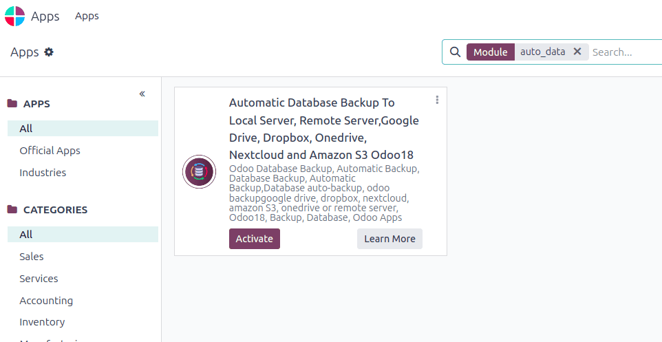 Después de instalar las dependencias, procede a instalar el módulo de Respaldo Automático de Base de Datos en tu entorno de Odoo.