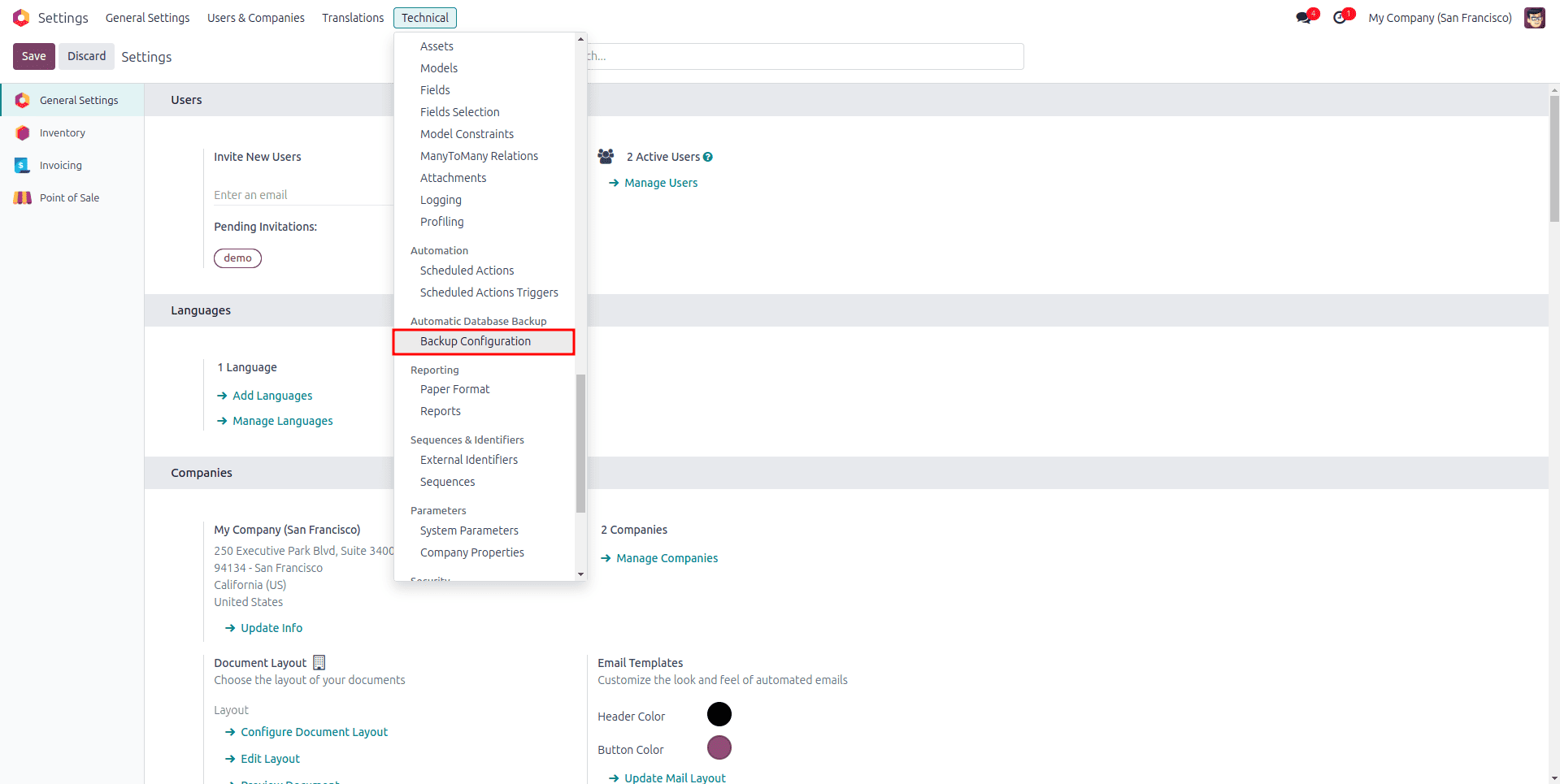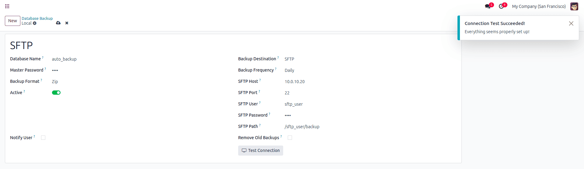 Paso 4: Configura los Ajustes de Respaldo en Odoo