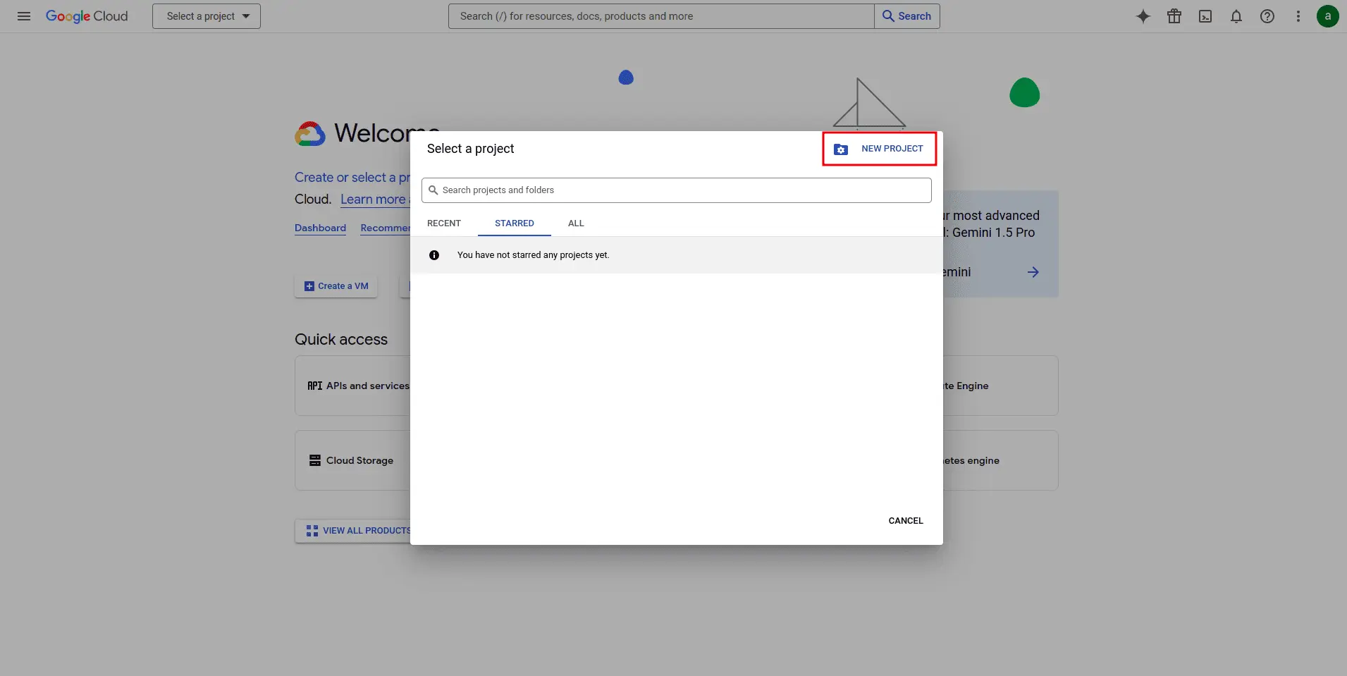 - Inicia sesión en el Google Cloud Console y crea un nuevo proyecto.