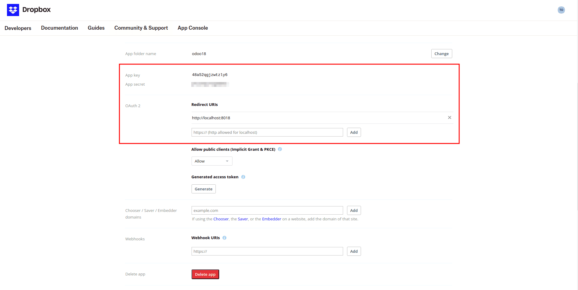 - Ingresa la Clave de Aplicación, Secreto de Aplicación y el Nombre de Carpeta de Dropbox (el mismo nombre que tiene la carpeta en Dropbox).