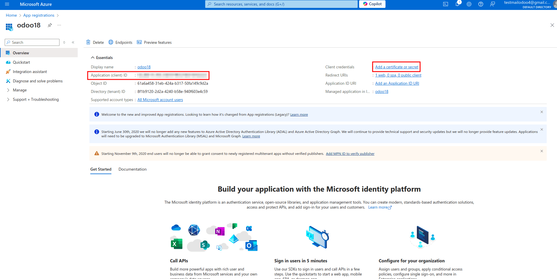- Copia el Client ID y genera las Credenciales del Cliente desde la aplicación registrada.