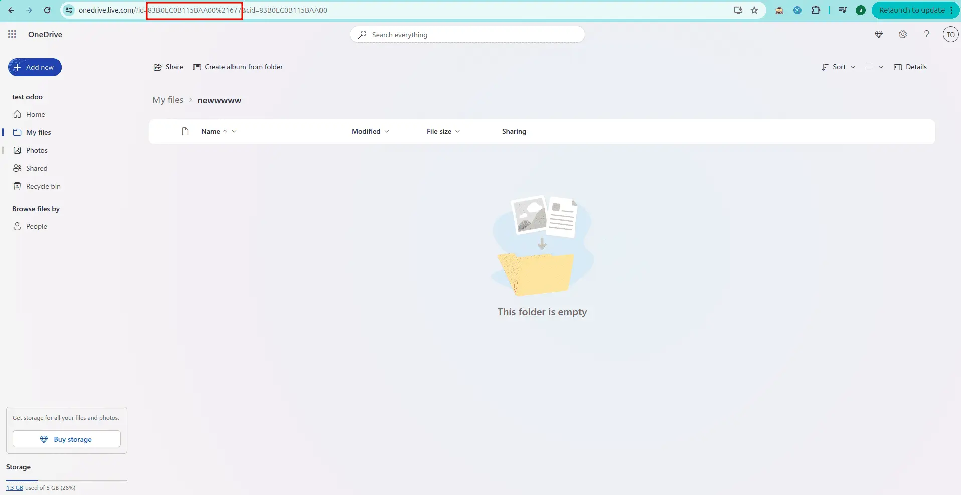 - Obtén el ID de Carpeta de OneDrive desde la URL de la carpeta en OneDrive donde deseas almacenar los archivos de respaldo.