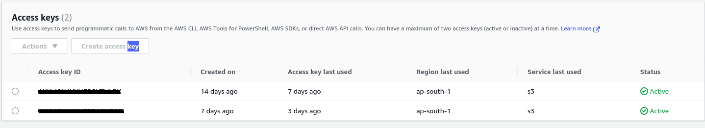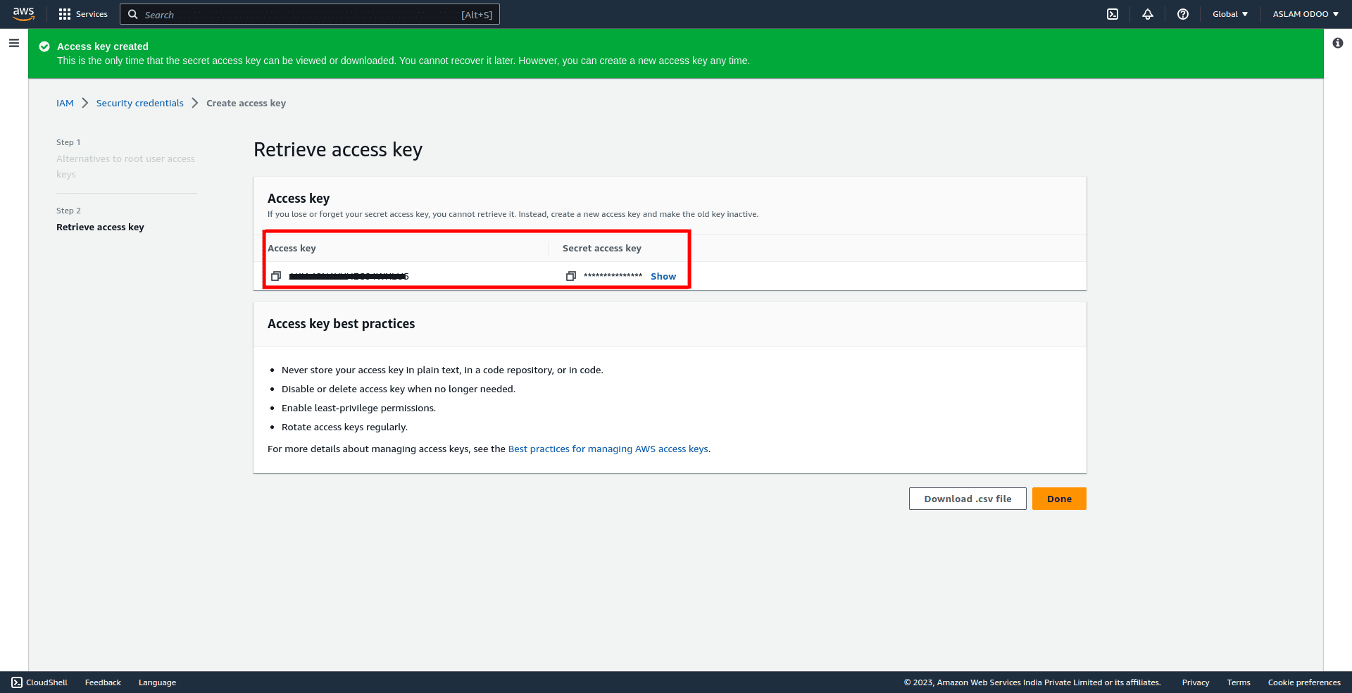 - Copia la Clave de Acceso y la Clave Secreta para usarlas más tarde.