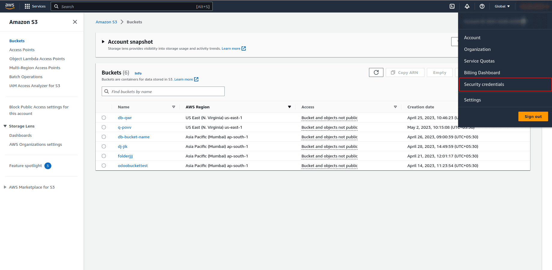 - Después de crear tu cuenta, navega a Credenciales de Seguridad de la Cuenta.