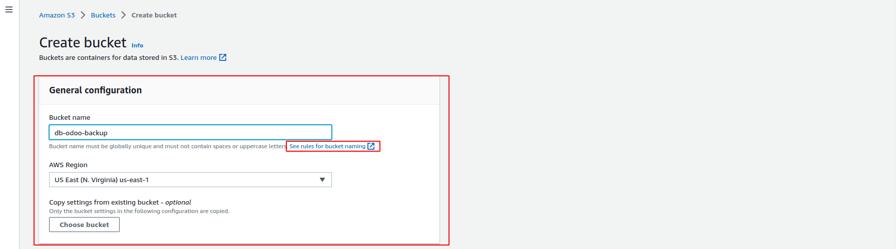 - Sigue las reglas de nomenclatura y selecciona la región donde deseas almacenar los respaldos.
