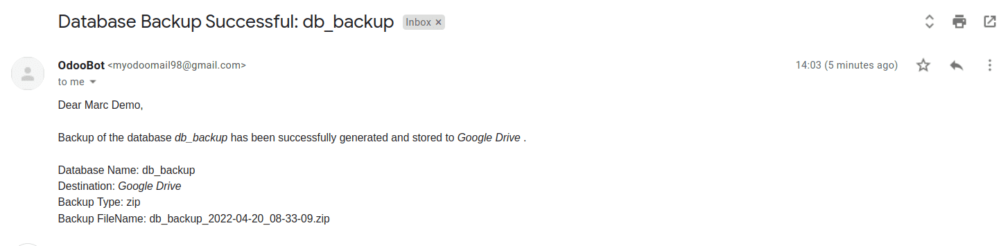 - Correo Electrónico de Notificación de Respaldo Exitoso: